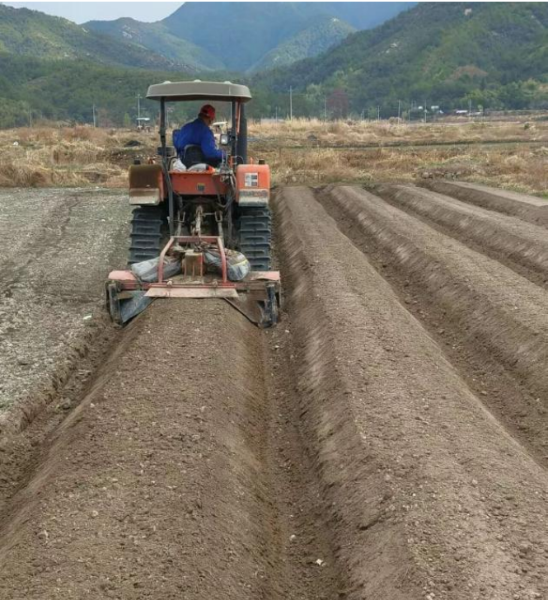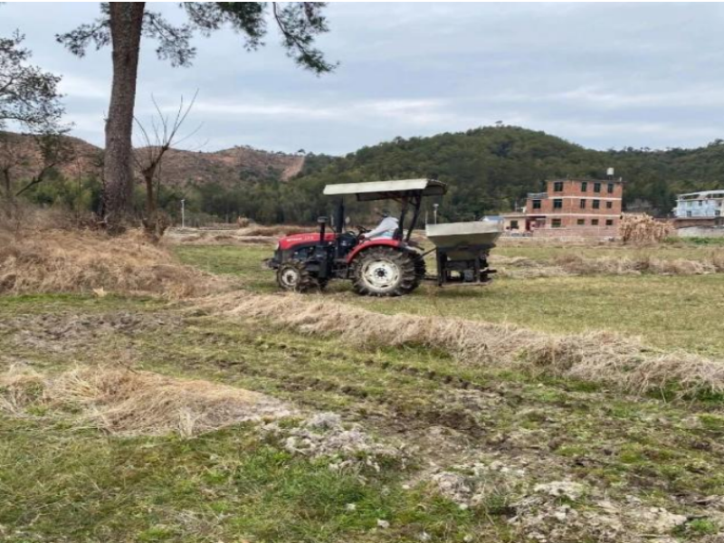 连城县三丰薯业有限公司农业基地的同事们驾驶农业机械耕地、施肥,开始春耕。